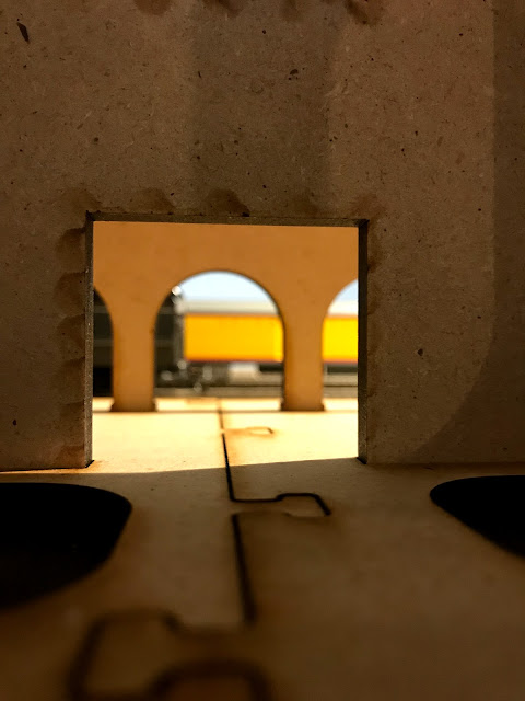 Constructed of laser-cut MDF, the kit's footprint is perfect for my station structure. This kit is for a background version of the model, which suits the building site very well because its back can be cut open to create interior vignettes looking out on the tracks. These vignettes both reproduce the energy of a busy 1950s passenger station and create an in-scale forced perspective onto the platform from the passenger's perspective. This view will require some modification of the kit, but it is a welcome challenge.